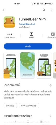 - ดาวน์โหลด App TunnelBear VPN บน Playstore (Link for Android)