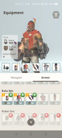 มาดูอาวุธกันบ้างและชุดเกราะกันบ้าง อาวุธตอนนี้มี ดาบและโล่, ดาบใหญ่, ดาบยาว, ค้อน, ปืนเล็ก และธนู แต่จากการทดสอบ ช่วงแรกจะใช้ได้แต่ดาบโล่ จะต้องเก็บ Rank ให้ได้ซัก 10-12 จะสามารถปลดล็อคดาบใหญ่มาให้ใช้ได้ ซึ่งการอัพเกรดอุปกรณ์ หรือสร้างอุปกรณ์จะต้องเก็บวัตถุดิบจากมอนสเตอร์มาสร้างอุปกรณื และอุปกรณ์จำพวกเกราะจะได้รับ Skill เมื่อสร้างครบเซต หรืออัพเกรด
