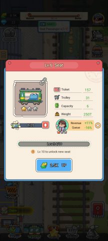 เริ่มต้นเราจะได้เป็นผู้บริหารรถไฟ พร้อมผู้ช่วยสาวสวย โดยมีตู้โดยสารมาให้ 1 ตู้ สิ่งที่เราต้องทำคือการเลือกเส้นทาง หาเงินค่าโดยสารมาอัพเกรดรถไฟ สะสมตู้ขบวน เพิ่มรูปแบบการบริการ โดยสามารถบรรทุกสิ่งของ ,แร่ และตู้นอนได้ (เปลี่ยนไปตามโบกี้ที่ลาก) ซึ่งจะเก็บค่าบริการเพิ่มได้ นอกจากนี้ยังสามารถขนสินค้าไปเทรดระหว่างเมืองได้อีกด้วย แน่นอนว่าแนวเกม Idle เมื่อปิดเกมก็ยังสามารถได้รับเงินอยู่ตลอดเวลา
