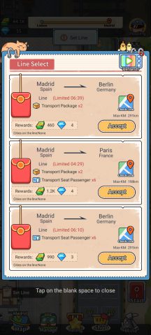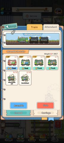 เมื่อพร้อมจะให้บริการแล้ว เลือกเส้นทางและเปิดให้บริการโดยการกดปุ่ม [Check] จากนั้นผู้โดยสารจะต่อแถวขึ้นรถไฟ ซึ่งเราสามารถจุคนได้จำนวนที่นั่งของตู้โดยสาร (สามารถอัพเกรดเพิ่มจำนวนได้) เมื่อผู้โดยสารขึ้นครบแล้วก็เริ่มออกรถแล้วไปกันได้เลยย ในระหว่างทางเราจะต้องคอยดูแลผู้โดยสามารถ คนที่ทานข้าว-เข้าห้องน้ำ ไม่นานเกินไปจนผู้โดยสารคนอื่นๆรอนาน (กดแตะเพื่อเร่งเวลา) จนถึงสถาณีปลายทางจึงจะเพิ่มเส้นทางใหม่ได้