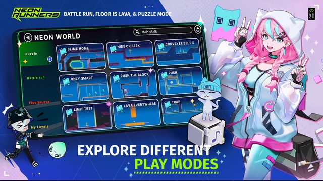 Neon Runners เกมส์มือถือใหม่แนว Battle Royale Run ในมุมมองด้านข้าง ที่มี ตัวละครนักวิ่ง ที่สวยงามหลากหลายให้เราได้เลือก ซึ่งแต่ละคนนั้นจะมีความสามารถแตกต่างกัน รวมไปถึงเรายังสามารถ สวมใส่อุปกรณ์ต่างๆ ให้นักวิ่ง เพื่อเสริมความสามารถได้หลากหลายแนว นอกจากเราจะต้องวิ่งไปด้วย ขัดขวางคนอื่น ไปด้วย หลบกัปดักไปด้วย และ ที่แน่นอนคือคุณต้อง พยายามเข้าเส้นชัยให้ได้เป็นคนแรก ไม่เพียงเท่านั้นทางทีมพัฒนาได้เตรียมโหมดการเล่นอื่นๆ ไว้รองรับผู้เล่นทั้ง การวิ่งเป็นทีม และ Puzzle Mode รวมไปถึงโหมดการสร้างแผนที่ด้วยตัวเอง แม้จะยังไม่มีข้อมูลว่าจะเปิดในเซิร์ฟเวอร์อื่นเมื่อใด แต่ก็แอบน่ารอเลยหล่ะ