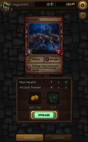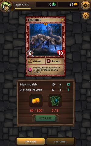 การอัพเกรดการ์ด ทำได้โดยการนำการ์ดซ้ำมาอัพเกรด ซึ่งสามารถอัพเกรดได้ถึง 5 ดาว โดยการอัพเกรดจะเพิ่มแค่ ATK และ HP ของการ์ดเท่านั้น แต่ยิ่งอัพเกรดจะยิ่งเห็นผลในการต่อสู้ เพราะเมื่อการ์ด Creature ตายยากขึ้น และโจมตีแรงขึ้นจนสามารถโจมตีทีเดียว Creature ศัตรูตายจะทำให้สู้ง่ายมาก ในทำนองเดียวกันหาก Creature ของฝ่ายเราตายง่าย โดนทีเดียวตายเราจะสู้ยากขึ้น โดยเฉพาะ Creature ที่มีโจมตีแบบ Double หรือแบบกระจาย