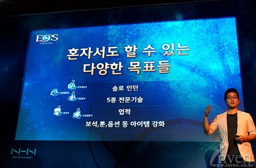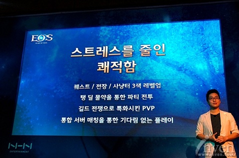 โดย Jong WooJin (Executive Director) ของ NHN ENTERTAINMENT กล่าวว่า “ทาง NHN ENTERTAINMENT ดีใจมากที่ได้ปล่อยเกมแนว MMORPG ซึ่งเป็นไตเติ้ลแรกออกมา ถึงแม้ว่าปัจจุบันเทรนด์ของเกมจะเป็น Mobile แต่ผมก็คิดว่ายังไง PC Online Game ก็ไม่มีวันตาย ส่วน ‘EOS’ นั้น เป็นเกมประเภทที่ยิ่งเล่นก็จะยิ่งอยากเล่นทุกวัน ได้โปรดช่วยสนับสนุนพวกเราต่อไปด้วยนะครับ”