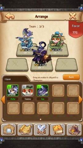 เมื่อเข้าเกมมาเราจะได้เลือกแชมป์เปี้ยนฮีโร่ของเราโดยมี 3 ตัวให้เลือกได้แก่