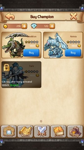เมื่อเราสามารถ ช่วยแชมป์เปี้ยนในภารกิจสำเร็จ ตัวแชมป์เปี้ยนจะมาอยู่ใน Shop ให้เราได้จ้างเข้าร่วมกองทัพ