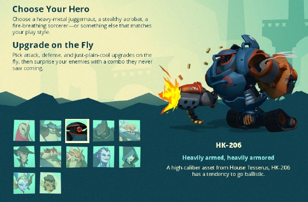 ตอนนี้หน้าเว็บไซต์มีอัพเดทฮีโร่ทั้งหมด 12 ตัว เพิ่มจากครั้งก่อนตอนประกาศเปิดตัวเกมที่มีแค่ 5 ตัว และคาดว่าจะมีอัพเดทเพิ่มเติมอีกในอนาคต