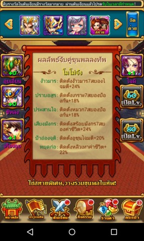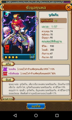 การดูว่าขุนพลคนไหนมีวาสนาอะไรนั้น ดูได้ไม่ยาก โดยดูจากข้อมูลขุนพลตัวนั้นๆ และเลื่อนมาดูช่องจับคู่ ซึ่งจะแสดงให้เห็นว่า ขุนพลตัวนี้สามารถจับคู่กับอะไรได้บ้าง หายาก-ง่าย แตกต่างกันไป โดยหลักๆแล้วจะมี ขุนพล และอาวุธ-เครื่องป้องกัน และหากติดตั้งตามนั้นก็จะเพิ่มพลังให้กับขุนพลได้ แถมเพิ่มทีเป็น % แบบนี้ ไม่มีไม่ได้แล้ว