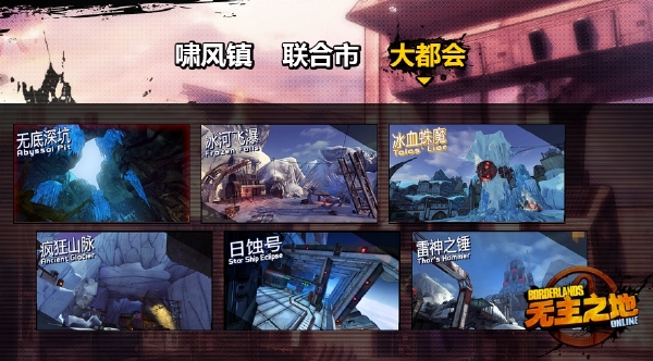 Borderlands Online เป็นเกมสไตล์ลงดัน ผู้เล่นจะสามารถเลือกด่านเล่นได้จากในเมืองแต่ละเมือง โดยในช่วงทดสอบครั้งนี้จะมีเมืองทั้งหมด 3 เมือง แต่ละเมืองจะมีทั้งหมด 6 ด่าน รวมทั้งหมด 18 ด่าน ผู้เล่นสามารถสนุกกับการยิง แย่งของ ซัดกับมันสเตอร์และบอสสุดโหดได้อย่างสะใจ