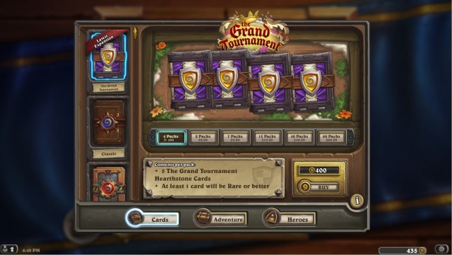 สามารถไปที่ Shop แล้วกดซื้อซองลายใหม่ที่เป็นของ The Grand Tournament ได้ในราคาเดิม 100 Gold หรือจะซื้อแบบยกแพ็ค 50 ซองในราคาที่ถูกลงก็ได้ สำหรับตอนนี้ขอตัวไปทดสอบการ์ดชุดใหม่ก่อนจ้า…