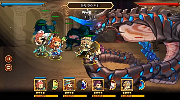 วิธีบังคับของเกมนี้ไม่ต่างจากเกมมือถืออื่น ๆ มากนักจะมาในรูปแบบเดียวกัน วิธีการเล่นเป็น 2D slide ตัวละครเดินหน้าโจมตีศัตรู ซึ่งสิ่งที่เป็นจุดเด่นของ Fantasy Heroes นั่นก็คือการโจมตีแบบ BURST ซึ่งจะคล้าย ๆ กับท่าไม้ตายเมื่อเกทพลังครบจึงจะสามารถกดใช้ได้ บอกเลยว่า BURST แต่ละท่านั้นสวยงามมาก