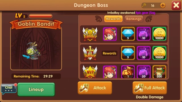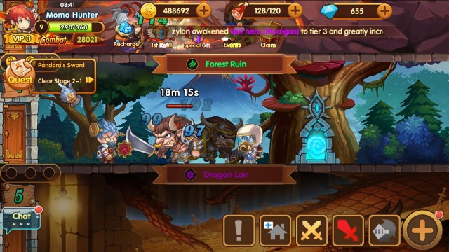 ซึ่งเมื่อครบเวลาปราบปรามเราก็จะได้ exp เงิน หรือไอเทมพิเศษกลับมา โดยฮีโร่ 1 คนสามารถสู้ได้เพียงทีละชั้นเท่านั้น ดังนั้นจึงมีความจำเป็นต้องหาฮีโร่มาให้เพียงพอต่อการตะลุยดันเจี้ยนใต้ดิน