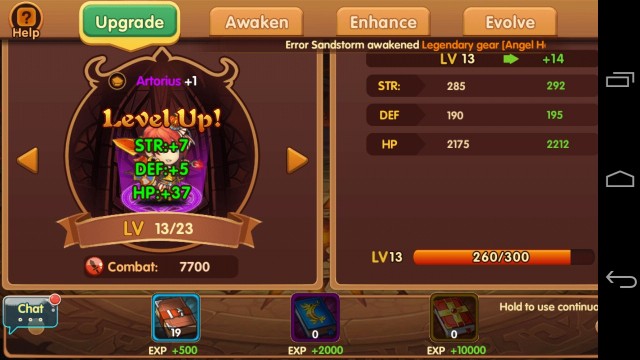 การนำสมุด EXP มาเพิ่ม exp ให้แก่ฮีโร่ ซึ่งสามารถหาได้จากดันเจี้ยนใต้ดินหรือโหมดเนื้อเรื่อง หรือพาฮีโร่ผจญภัยในเนื้อเรื่องก็ได้ exp เช่นกัน