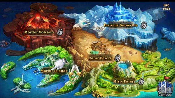 ในส่วนของแผนที่ก็เช่นกันจะปลดล็อคเป็นเกาะ ๆ ไปเมื่อถึงเงื่อนไขที่กำหนด โดยในแต่ละเกาะก็จะมีด่านย่อยกว่า 10 ด่านให้เพื่อน ๆ ได้ตะลุยกัน มอนสเตอร์ในด่านต่อสู้นั้นมีหลากหลายรูปแบบที่ไม่ซ้ำกันในด่านแรก ๆ จะได้ของรางวัลแบบธรรมดา แต่พอไปในด่านที่สูงขึ้นก็จะได้รางวัลดีขึ้น และเมื่อเพื่อน ๆ แข็งแกร่งขึ้นก็จะสามารถนำฮีโร่เข้าร่วมทีมผจญภัยได้ แต่จะต้องผ่านภารกิจและการฝึกฝนก่อน