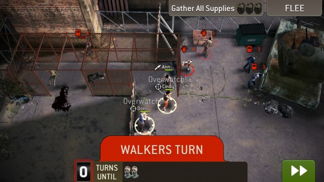 หากเราเดินเพียงแค่ครึ่งเดียว (สัญลักษณ์ Quick) แล้วกด End Turn ตัวละครนั้นๆจะทำการ Over Watch ก็คือหาก Walker เดินเข้ามาในระยะจะทำการโจมตีทันที แต่หากเดินจนสุด (สัญลักษณ์ คนวิ่งสีฟ้า) ก็จะเป็นการเคลื่อนที่เท่านั้น