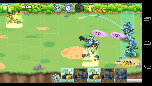 เมื่อวางหุ่นตัวแรกเกมก็จะเริ่มทันที หุ่นที่เราวางไว้ก็จะทำการโจมตีอัตโนมัติ เราสามารถส่งหุ่นไปเป็นกำลังเสริมได้โดยรอ EN ให้พอต่อการเรียกหุ่นตัวนั้นๆ ก็จะสามารถนำหุ่นมาวางบนสนามได้