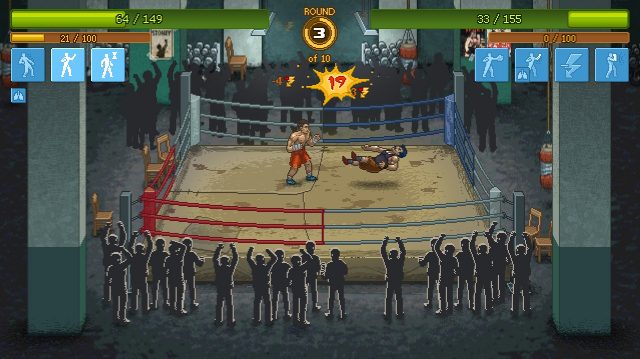 ในการต่อสู้เราต้องวางแผนการชกในแต่ละรอบ จัดสกิลให้เหมาะสม ทั้งท่าบุก ท่าตั้งรับ ท่าหลบ และไม่ให้ Stamina หมด ไม่งั้นโดนน๊อคเอาง่ายๆ โดยตัวละครจะออกท่าโจมตีเอง เมื่อจบการต่อสู้ หากชนะก็จะได้ Skill point มาอัพสกิลต่อไป ซึ่งควรจะวางแผนแต่เนินๆเพื่อไม่ให้เปลือง Skill point