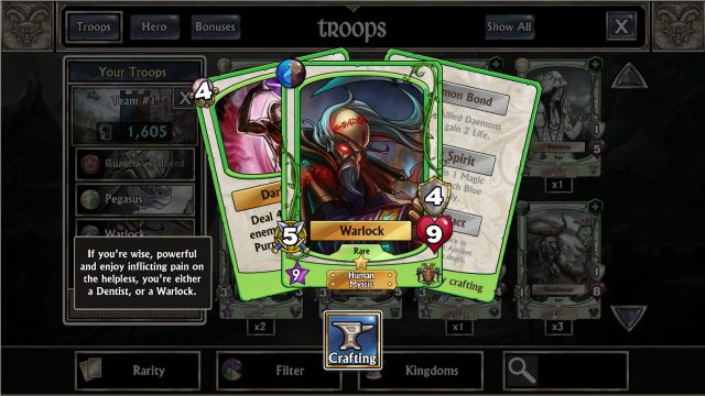 นอกจาก อัพ LV และการอัพระดับการ์ดขึ้นแล้ว ระบบยังเพิ่มการ Traits ของการ์ดมอนสเตอร์ด้วย ซึ่งจะปลดล็อคสกิลพิเศษ ได้อีก 3 สกิล โดยสกิลเหล่านี้จะช่วยในการบัฟทั้งทีม และยังช่วยให้เก็บมานาไวขึ้นอีกด้วย โดยวิธีทำก็ใช้ Traitstone ที่หาได้จากตามด่านมาอัพเกรดปลดล็อคสกิล