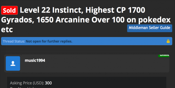 source: People Are Already Selling Pokemon Go Accounts for Hundreds of Dollars
