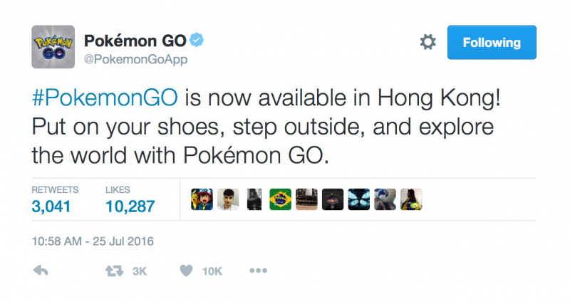 เมื่อวานนี้มีข่าวออกมาจาก Twtter official account @PokemonGoApp ระบุข้อความว่า พวกเขาได้ทำการเปิดตัวเกม Pokemon GO อย่างเป็นทางการในประเทศฮ่องกงแล้ว เมื่อวันที่ 25 กรกฎาคม ที่ผ่านมา