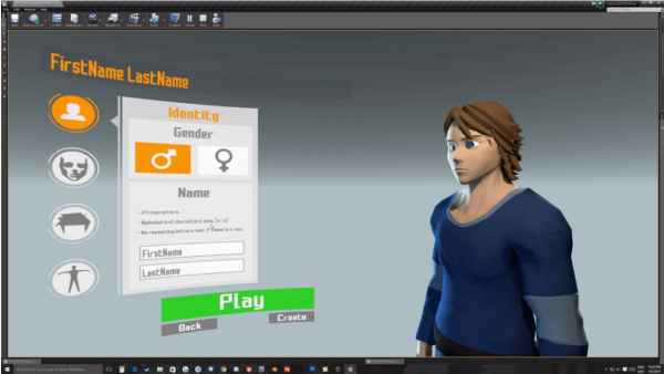เราจะได้เลือกเพศของตัวละครก่อน จากนั้นตั้งชื่อโดยใส่ได้สูงสุด 24 ตัวอักษร และสามารถเลือกได้ว่าจะแสดงชื่อเต็ม (ชื่อพร้อมนามสกุล) หรือจะแสดงเพียงแค่ชื่อก็ได้