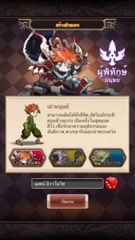 เริ่มเกมมาเราก็ต้องทำการเลือกตัวละครตัวแรกกันก่อน ซึ่งเป็นการเลือกจาก 3 เผ่า คือ มนุษย์ ก็คืออัศวินนักรบผู้แข็งแกร่ง เดินได้รอบด้าน 4 ทิศ เผ่าต่อมาคือ ครึ่งอสูร ลูกครึ่งคนกับเดวิล สู้รบเพื่อเกียรติยศเป็นหนึ่ง และเผ่าสุดท้ายคือ สัตว์เทพ หรือ เผ่าจิ้งจอก อาศัยอยู่ในป่าเป็นผู้รักษาสมดุลของธรรมชาติ