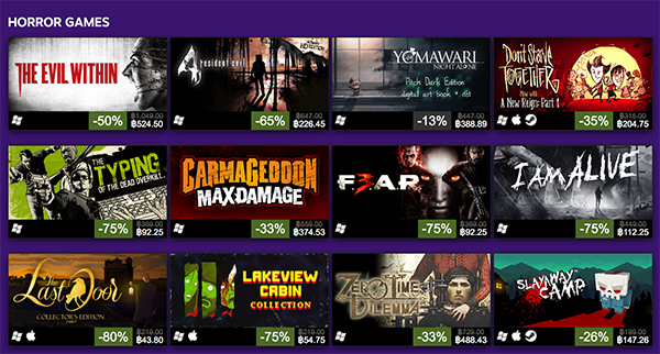 ตัวอย่างเกม Steam ที่ลดราคาในเทศกาล Halloween 2016
