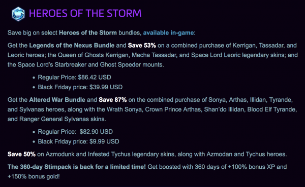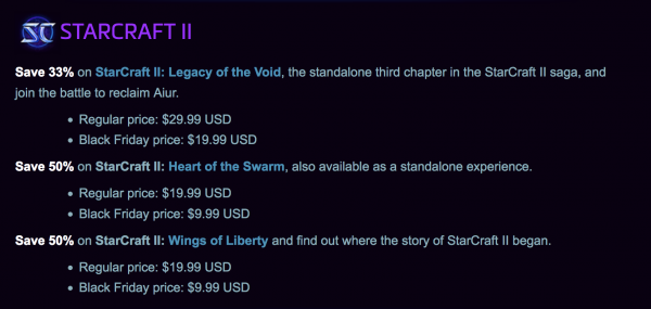 โดยช่วง Black Friday Sale นี้จะมีตั้งแต่วันนี้ไปจนถึงวันที่ 28 พฤศจิกายน 2016 สามารถดูรายละเอียดเพิ่มเติมได้ที่ Black Friday Sale: The Best Deals on Blizzard Games!