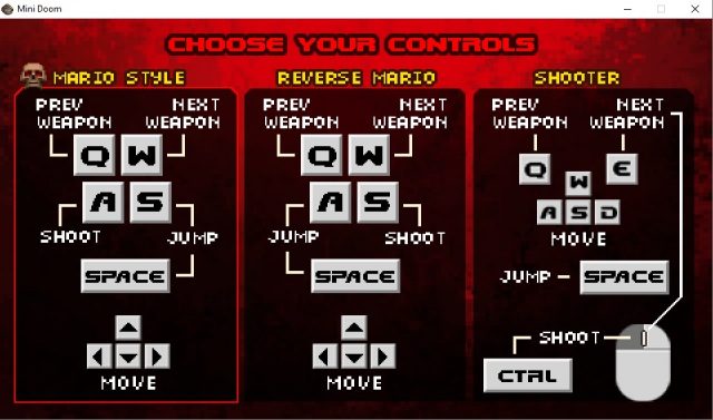 สำหรับ Mini DOOM วิธีการเล่นจะเหมือนกับเกม 2D ยิ่งด้านข้าง โดยสามารถบังคับได้ 3 แบบดังนี้