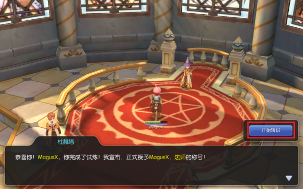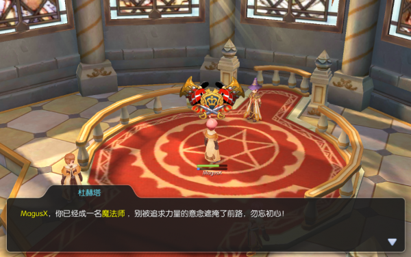 ขั้นตอนสุดท้าย เข้าไปคุยกับ NPC อีกครั้งเพื่อออกจากพรมแดง อย่าลืม! เดินไปคุยกับ GrandNPC (คนแรกที่คุยด้วย) และ NPC คนที่อยู่ข้างๆ เพื่อรับไม้กายสิทธิ์ wand และสกิลแรกของคลาสด้วยนะคะ