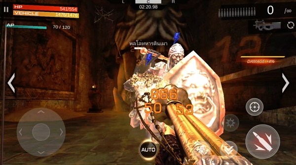 ส่วนในเกมนั้น พยายามยิงศัตรูโดนเน้นหัวเป็นหลัก เพราะเมื่อยิงที่หัวจะทำให้อีกฝ่ายตายง่ายขึ้น ส่วนถ้าเกิดมีพวกสัตว์มาก่อกวน เช่น พวกหมา , ค้างคาว , นก พวกนี้ควรจัดการเป็นอันดับต้น เพราะมันจะสร้างดาเมจเราได้เรื่อยๆ และคอยดูว่ามีศัตรูตัวไหนวิ่งเข้ามาใกล้เรา ถ้าหลบไม่พ้น ให้บังคับรถหนีเลยครับ และพยายามยิงแบบเซฟกระสุนไว้ เพราะถ้ากดยิงแช่แล้วเกิดมือทัชไม่โดนอีกฝ่าย เราจะเสียกระสุนฟรีๆ การเซฟกระสุนจะช่วยได้มาก หลังจากคนเล่น เล่นถึงด่านประเทศจีนแล้ว จะรู้เองครับว่าศัตรูจะยากมาก กระสุนมีสิทธิหมดได้ ต้องระวัง