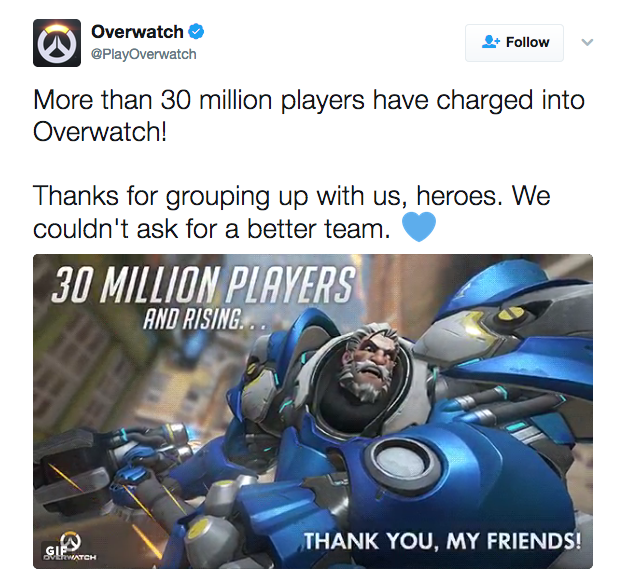 ถึงแม้จะดูเงียบหายกันไปบ้าง แต่ก็มีข่าวมาให้ได้ตื่นตาตื่นใจกันอยู่เรื่อย กับเกมยิงสุดฮิต Overwatch ที่เพิ่งประกาศผ่าน Twitter อย่างเป็นทางการว่า พวกเขามีผู้เล่นรวมทั่วทั้งโลกมากถึง 30 ล้านคนแล้ว!