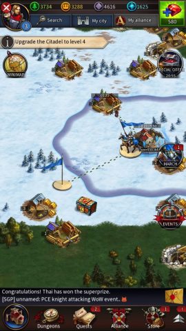 การสร้างเมือง : เราจะต้องสร้างแหล่งทรัพยากรก่อนเช่น Gold ,Wood ,Stone ก่อน แล้วจึงค่อยๆสร้าง ค่ายทหาร ,โรงวิจัย และอื่นๆ สำหรับ House เป็นความจุของกองทัพในอาณาจักร