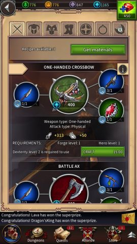 การลุยดันเจี้ยน : เมื่อเมืองมี LV2 ระบบจะเปิดฟังก์ชั่นดันเจี้ยน เราสามารถเข้าไปต่อสู้เพื่อเก็บ Material สร้างอาวุธได้