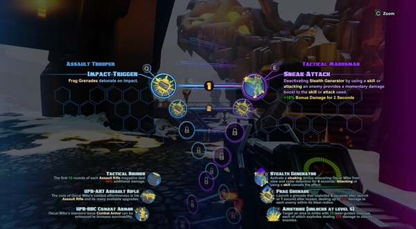 ตัวเกมนั้นเวลาเล่นเกมทั้งโหมด PVP และ PVE นั้นรูปแบบจะเหมือนกันเด๊ะ นั่นก็คือระบบเลเวล โดยเมื่อคนเล่นเลเวลอัพแล้วก็จะสามารถเอาแต้มพอยด์อัพสกิลได้หนึ่งในสองไปเรื่อยๆ ซึ่งให้อารมณ์คล้ายกับเกม MOBA อย่างมาก รวมไปถึงการสะสมผลึกคริสตัลในการเอามาเป็นค่าใช้จ่าย ในการปลดล็อคอุปกรณ์ต่างๆ ในพื้นที่ เช่น เรียกลำแสงเพิ่มความเร็วในการวิ่ง หรือเรียกป้อมปืนมาช่วยสู้