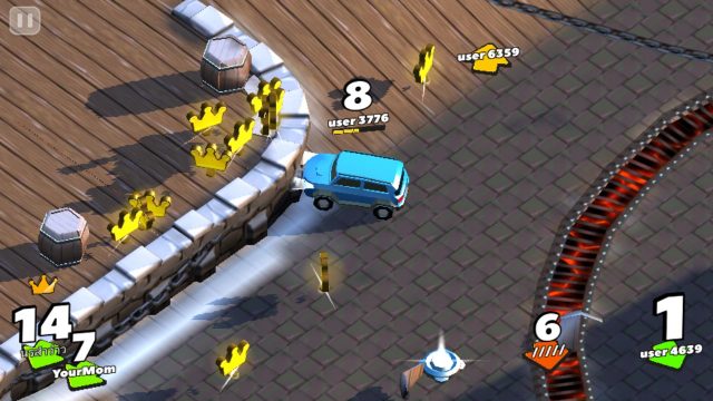 ตัวรถจะวิ่งเดินหน้าไปเรื่อยๆ เราบังคับได้โดยการแตะด้ายหรือขวาของจอเพื่อเลี้ยว แตะ 2 ข้างพร้อมกันเป็นการถอยหลัง เป้าหมายคือเก็บไอเทมรูปมงกุฏให้มากที่สุด