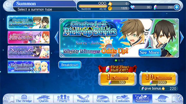 ถ้าจะว่าตรงๆ แล้ว ระบบเกมเพลย์นี้จะเหมือนกับเกมเพลย์ของซีรี่ย์ Tales แทบจะเด๊ะๆ เลยครับ แน่นอนว่าเกมเพลย์ลักษณะนี้จะไม่เคยเห็นในเกมมือถืออื่นแน่ๆ ที่เพิ่มเติมก็คือระบบยืมตัวจากคนเล่นคนอื่น ที่จะสามารถใช้สกิลท่าไม้ตายได้ทันที และการหาอาวุธมาประดับให้กับตัวละครเรา โดยอาวุธนั้นจะสามารถหาได้จากเควสต์ และแน่นอนที่สุด…. จากกาชาครับ โดยกาชาเกมนี้จะไม่ได้ตัวละครนะครับ แต่จะได้อาวุธเท่านั้น โดยตัวละครในเกมนี้คนเล่นจะได้จากการเล่นปกติอยู่แล้ว