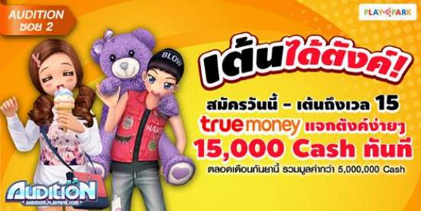 AUDITION เกมแดนซ์ออนไลน์สุดฮิตอันดับ 1 ของเมืองไทย ต้อนรับผู้เล่นใหม่ด้วยกิจกรรม New Register Get Item รับทันทีไอเทม Metronome ไปฝึกกด Perfect และหากเล่นถึงเลเวล 6 รับไอเทมไอติมถาวรสุดน่ารัก ตั้งแต่วันนี้ – 30 กันยายน 2560 รายละเอียดเพิ่มเติม (คลิกที่นี่) และอีกกิจกรรมสุดฮอต “Audition เต้นได้ตังค์ by true money” แค่สมัครสมัครในเซิร์ฟเวอร์ Audition ซอย 2 และเล่นถึงเลเวล 15 ก็ลุ้นรับเงินไปช๊อปปิ้งในเกมแบบฟรีๆ รวมมูลค่ารางวัลกว่า 5,000,000 cash กันเลยทีเดียว วันนี้ – 30 กันยายนนี้ รายละเอียดเพิ่มเติม (คลิกที่นี่)
