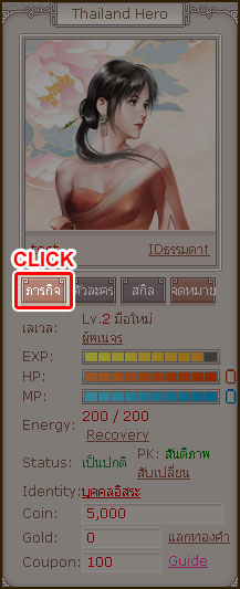 2. ขั้นตอนการบรรลุภารกิจแนวหลัก และภารกิจมือใหม่นั้นคล้ายกัน กล่าวคือ ตราบใดที่ภารกิจยังไม่ลุล่วง ด้านล่างของรูปผู้เล่นในหน้าหลักจะปรากฏ ภารกิจ เมื่อกดแล้วก็จะได้รับแจ้งเตือนจากทางระบบในจัดการภารกิจดังกล่าว สามารถเข้าไปตรวจดูได้