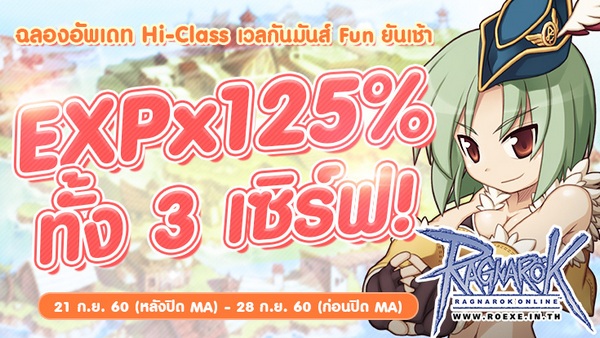 ฉลองอัพเดต Hi-Class จัดคูณให้เลย EXPx125% ทั้ง 3 เซิร์ฟ ตั้งแต่วันที่ 21 ก.ย. 60 – 28 ก.ย. 60 เวลกันมันส์ Fun ยันเช้า ตลอด 7 วันเต็ม!