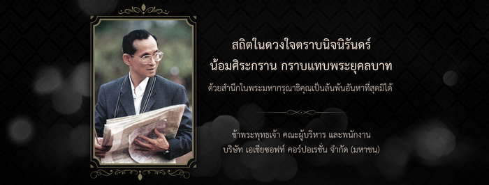 พระบาทสมเด็จพระปรมินทรมหาภูมิพลอดุลยเดช บรมนาถบพิตร โดยสามารถร่วมถวายความอาลัยได้ที่ http://www.asiasoft.co.th/HMKingRama9