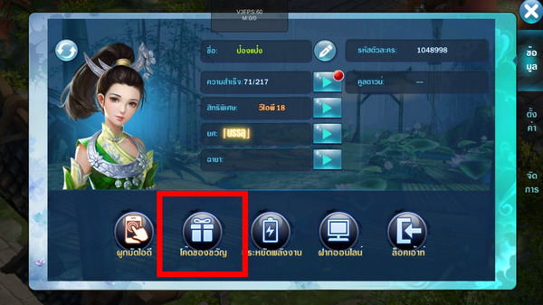 2. กดเลือกเมนู > โค้ดของขวัญ