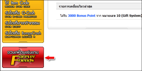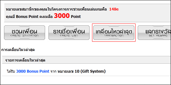 4. คลิกปุ่ม “เคลื่อนไหวล่าสุด” จะพบว่าได้รับ 3,000 Bonus Point จาก Gift System เรียบร้อยแล้ว ^^
