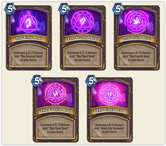 ทั้ง 14 ใบ เป็นการ์ดที่พึ่งเปิดเผยจาก 135 ใบของแพค Kobolds & Catacombs ก็ถือว่ามีทีเด็ดเยอะทีเดียว ไม่ว่าจะเป็น การ์ดที่มีความสามารถใหม่ๆ การ์ดที่อัพเกรดได้ในตัวมันเอง, การ์ดที่สุ่มความสามารถเพิ่มเมื่อจั่ว ฯลฯ และทีเด็ดสมบัติลับอีก 7 Class ที่ยังไม่ได้ถูกเปิดเผย ต้องรอดูกันว่า Blizzard อุปไต๋อะไรไว้แต่ที่แน่ๆคือ มันส์แน่นอน!