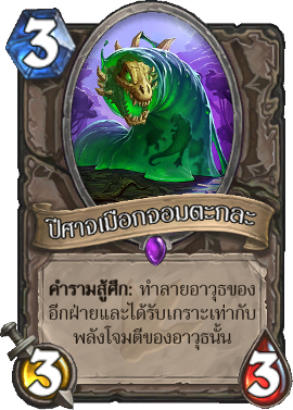 เสียงสุดท้าย : มอบ +4/+2 ให้มินเนี่ยน 1 ตัวในมือ และเมื่อมันตายให้สวมใส่อาวุธนี้อีกครั้ง