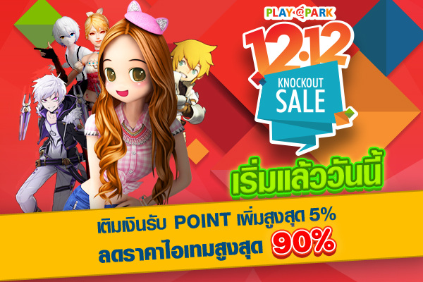 และแล้วก็ถึงเวลาที่รอคอย “PLAYPARK.COM” ผู้ให้บริการเกมออนไลน์ชั้นนำ ในเครือเอเชียซอฟท์ฯ เปิดมหกรรมลดราคาครั้งยิ่งใหญ่พร้อมกันทั้ง 5 ประเทศ ที่มีเวลาจำกัดเพียง 24 ชั่วโมงเท่านั้น!! ในแคมเปญ “PLAYPARK 12.12 KNOCKOUT SALE” 1 วันช็อปมันส์หยุดโลก เริ่มเปิดให้ช็อปได้ตั้งแต่วันนี้ 12 เดือน 12 (12 ธันวาคม 2560) เวลา 12:00 น. ถึง 13 ธันวาคม 2560 เวลา 12.00 น.