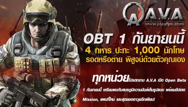 FPS น้องใหม่มาแรง! ที่เคยปลุกกระแสเด็ก FPS รอแห่เล่นจนแน่นร้านอินเตอร์เน็ทกันมาแล้วในช่วง CBT ล่าสุดเกม A.V.A ได้เปิด OPEN BETA ให้ทุกคนได้เข้ามาสัมผัสความมันกันทั่ว South East Asia แล้วเมื่อวันที่ 1 กันยายนที่ผ่านมา ทีมงานเร่งเตรียมเซิร์ฟเวอร์ไว้เตรียมรับมือคลื่นกระแสความแรงของชาว FPS แล้วในช่วงสุดสัปดาห์นี้!