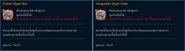 ทั้งนี้ ตรา Glyph ที่ใช้ในการปลดล็อก สามารถหาได้จากดันเจี้ยนระดับ 60 อย่าง Sabex Armony [แผนที่ Highwatch] กับดันเจี้ยน Macellarius Catacombs [แผนที่ Arx Umbra] ที่มีโอกาสได้กล่องสุ่ม Glyph มาเป็นรางวัล