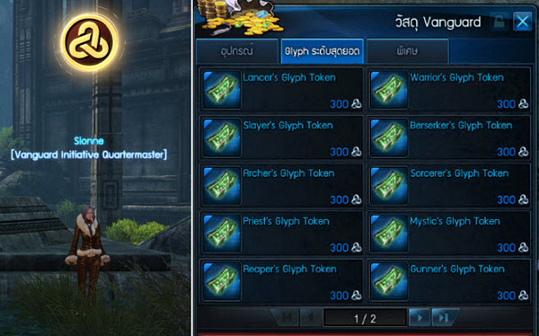 หรือหากมีคะแนน Vanguard Points มากพอ ก็สามารถนำไปแลก Glyph Token ได้ [NPC: Sionne] ได้ที่เมือง Highwatch เช่นกัน
