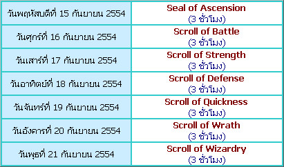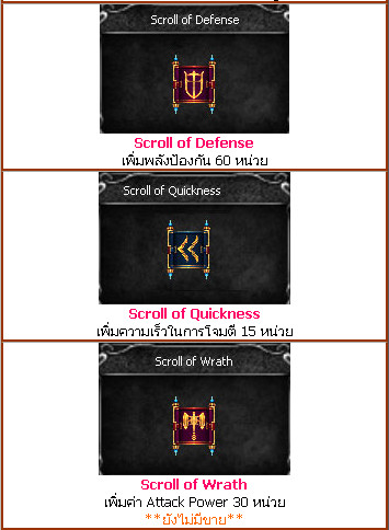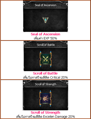– ไอเทมประเภท Scroll ไม่สามารถใช้ซ้ำร่วมกับ Scroll ประเภทอื่นภายในเวลาเดียวกันได้