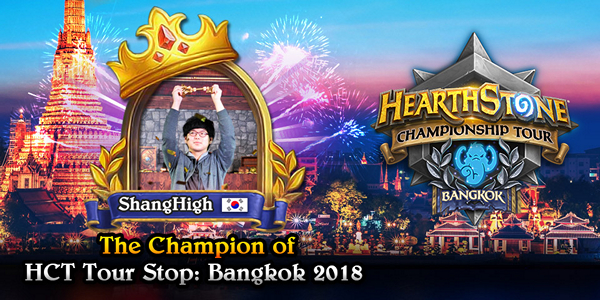 HCT Tour Stop: Bangkok ครั้งนี้นับเป็นชัยชนะครั้งแรกและนับได้ว่าเป็นผลงานที่ยอดเยี่ยมสำหรับการแข่งขันทัวร์นาเมนต์เกม Hearthstone ของ ShangHigh โดยที่เขาได้รับชัยชนะอย่างต่อเนื่องโดยไม่พ่ายให้แก่ใครเลยตลอดการแข่งขันครั้งนี้